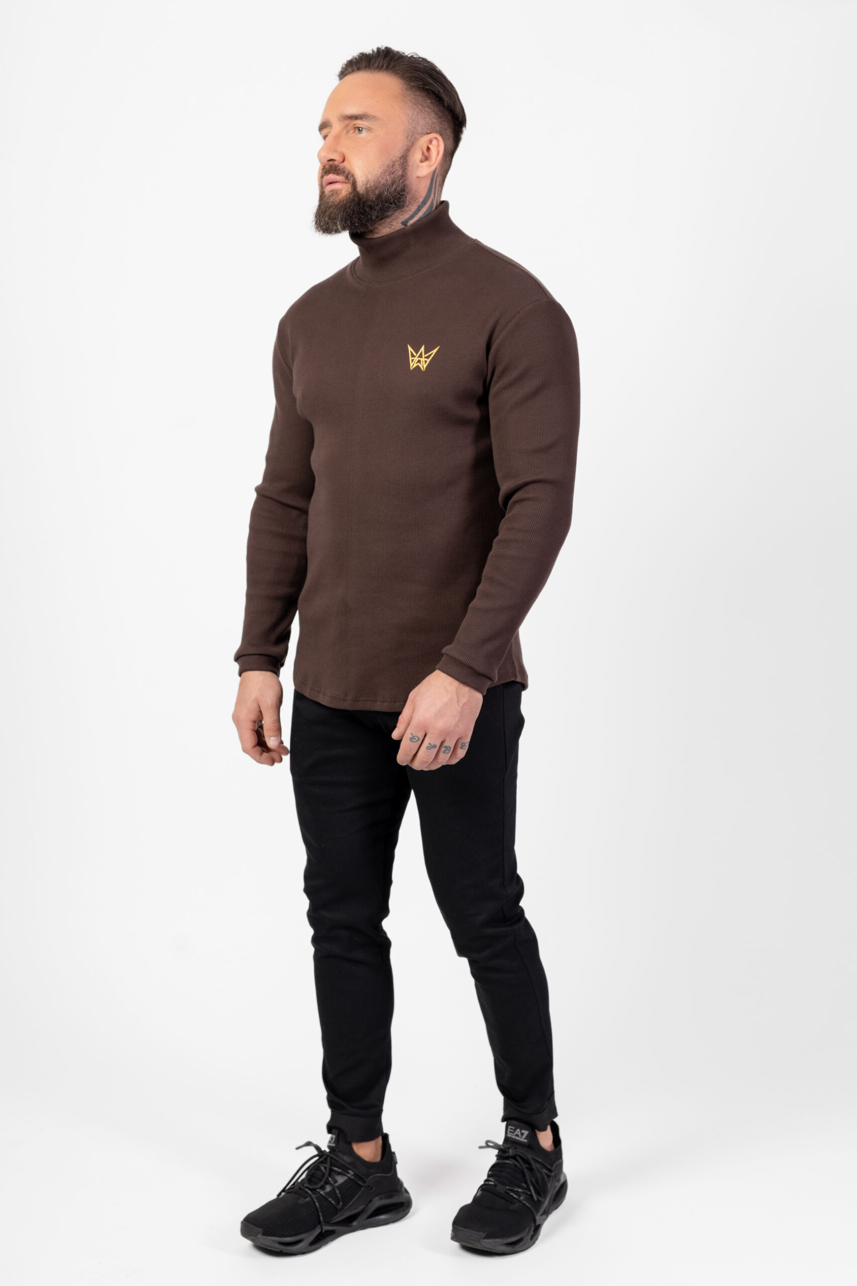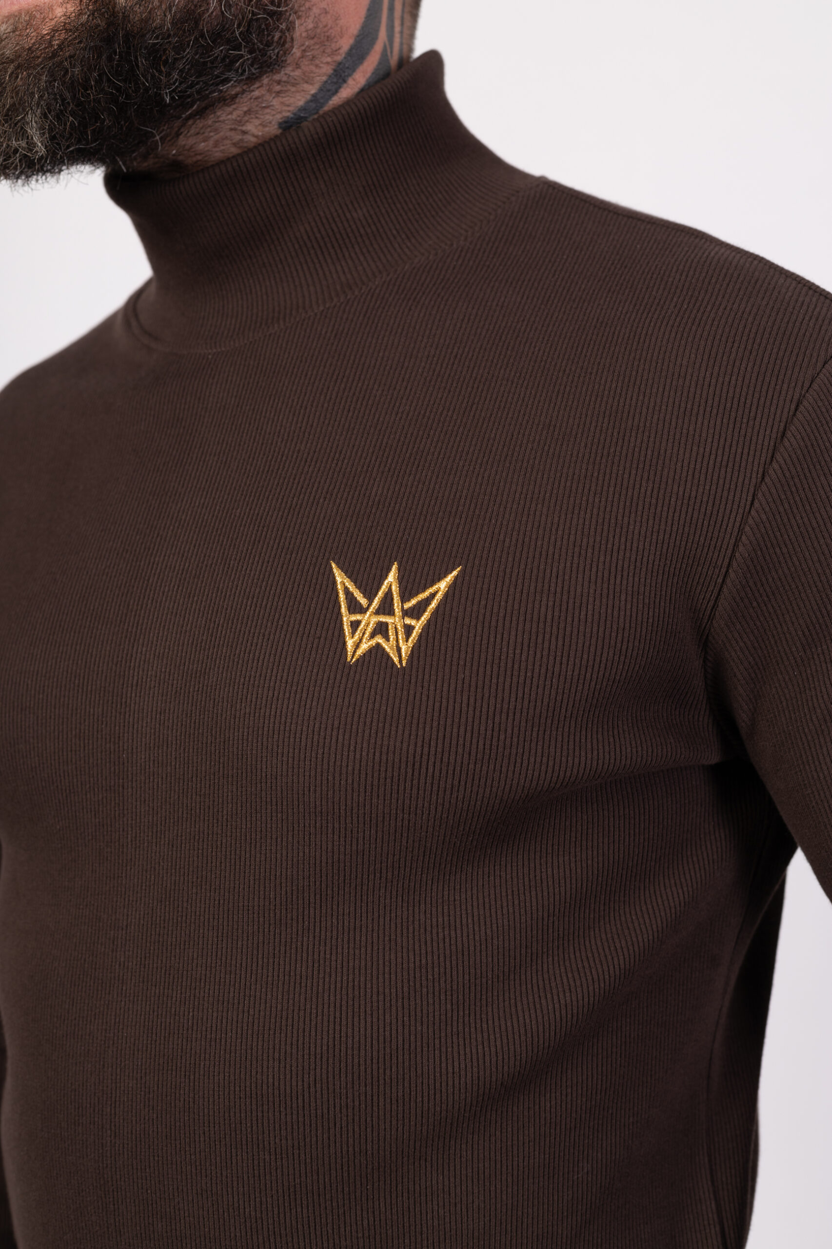 Czekoladowy golf męski prążkowany z logo Tres Amigos